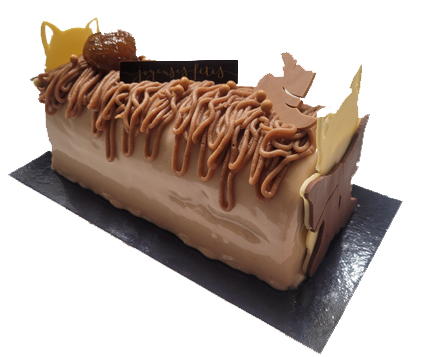 Sablé croustillant, crémeux au marron relevé d’un soupçon de vieux rhum, sablé à la châtaigne, confit cassis-mûre